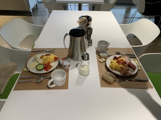 Утром нас ожидал завтрак. Всех продуктов было ровно столько, сколько жителей в отеле - 5 человек. Но, все было очень вкусно.
