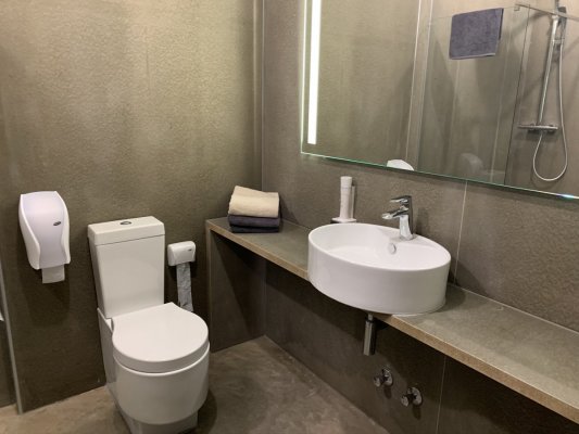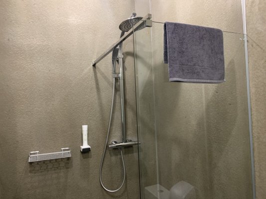 Номер оказался выше всех похвал - очень нестандартный стиль industrial. Плательное белье и полотенца тоже не в стандартных белых тонах. Голые шпатлеванные потолки, стены и полы - очень круто.