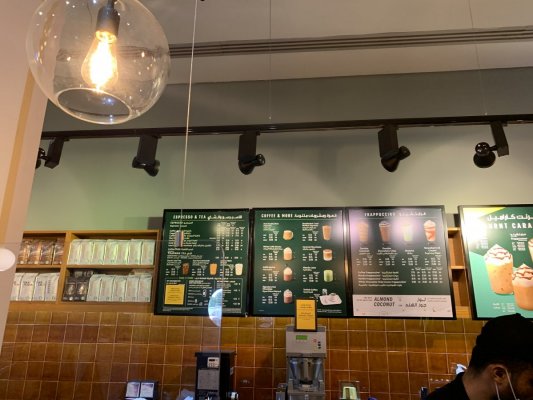 Starbucks очень люблю, всегда, во всех странах и городах кофе был одинаково вкусный. В этом ... Ещё Starbucks очень люблю, всегда, во всех странах и городах кофе был одинаково вкусный. В этом coffee shop закал с собой Cappuccino Grande за 17AED, отойдя 30 метров меня охватил дикий страх, я не чувствовал вкус кофе вообще. Все, приплыли, корона, подумал я. Но нет, вкус молока то я чувствую, значит проблема в кофе. Вернулся в магазин, говорю мальчику о том, что он забыл добавить кофе. Тот отрицал, но без проблем согласился сделать ещё один. Результат был таким же. Данный coffee shop Starbucks не рекомендую