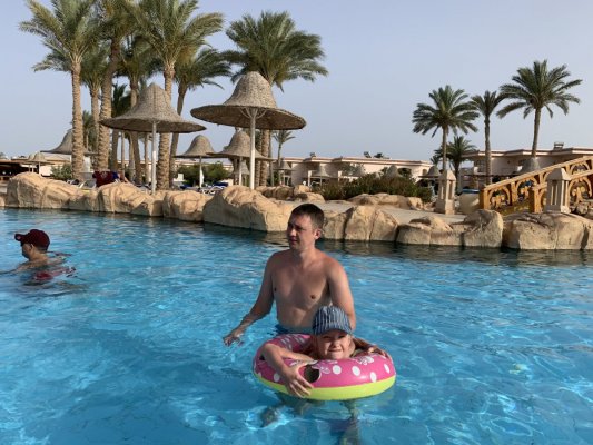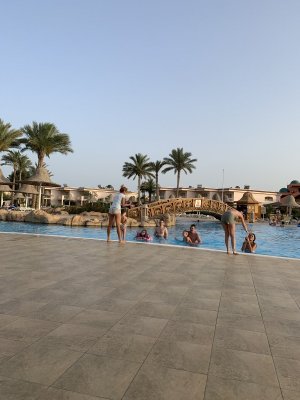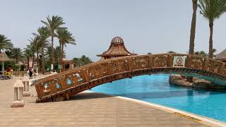 Территория отеля очень большая. Видно, что когда это был Rixos, отель следил за своим именем и статусом. Огромная река когда-то проходила по всей территории отеля, но воды там нет. Сейчас - это типичный египетский отель с не очень чистой территорией. Есть небольшая детская площадка и мини-клуб, в который мы так ни разу и не попали. Пляж типичный с деревянным пирсом. Рыбок мы видели, н немного. Очень неприятным моментом было то, что когда приходили отливы, появлялась мошкара, которая очень больно кусала и последние три дня нашего пребывания мы на пляж даже не ходили, отдыхали у бассейна.