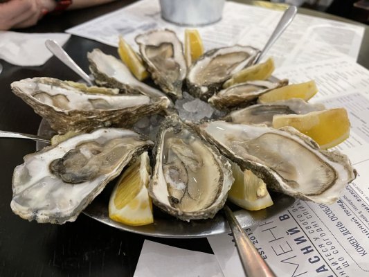 Черноморка всегда удивляет количеством посетителей и неважно, днём зайдёшь или вечером, всегда почти полная посадка... ... Ещё Черноморка всегда удивляет количеством посетителей и неважно, днём зайдёшь или вечером, всегда почти полная посадка... Чем же они так привлекают гостей? А тем, что у них самые вкусные устрицы в Киеве и это факт проверенный уже не раз. Очень рекомендую попробовать устрицу «Черноморку», она не очень большая, но мясистая и вкусная. Ну, конечно же и бокальчик просеко, которое здесь продают на разлив.