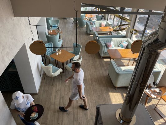 Из минусов - в 11 утра было очень душно сидеть внутри ресторана, почему-то окна были полностью закрыты, а кондиционеры работали не все. Женщина-официант очень явно показывала своё раздражение на пару невинных просьб - заменить омлет на яичницу спустя 5 минут после заказа и посчитать не общий счёт, а два отдельно. Но, это не испортило мнение о ресторане.