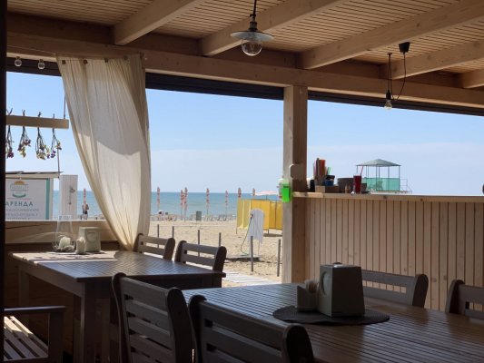 Ресторан Кораблик со своим пляжем находится прямо на берегу моря. Слышала о нем неоднократно массу ... Ещё Ресторан Кораблик со своим пляжем находится прямо на берегу моря. Слышала о нем неоднократно массу положительных отзывов и сегодня решили здесь позавтракать и могу сказать, что это лучший ресторан за последнее время. Очень красивый морской интерьер с дорогой мебелью и посудой. Выбор блюд и напитков достаточно большой, при чем и для детей и для взрослых. Цены абсолютно адекватные, не смотря на то, что это пляжное заведение. Заказали Тартар из дунайской селедки, омлет с овощами, окрошку и сырники. Абсолютно все блюда очень-очень вкусные. Подача великолепная.