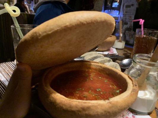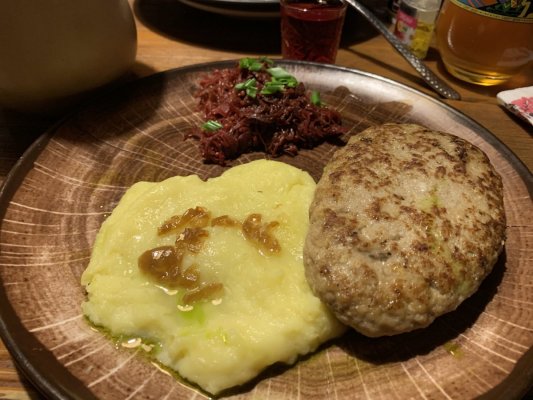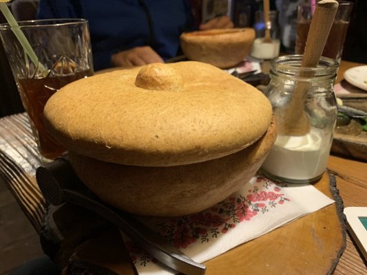 Я большой поклонник украинской кухни, но так вкусно я еще нигде не ел, и это без преувеличения. Официант посоветовала мне заказать стейк из баранины, которую они тушат в печи всю ночь. Это было непередаваемо аппетитно и красиво подано. Мне было так вкусно, что я неприлично быстро его съел. Также не могу не выделить деруны с белыми грибами и Грибучий глинтвейн. От всех блюд получили огромное удовольствие!