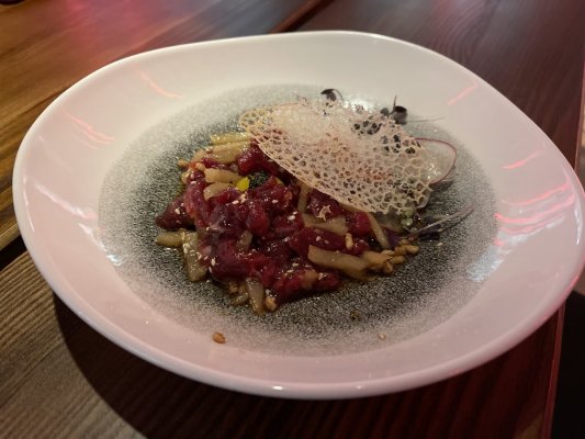 Из того что заказали все было на достаточно среднем уровне, без души, вот вообще ничего не зацепило, даже напротив, например тар тар из говядины очень огорчил. Это было просто бездарно порубленное мясо причём очень низкого качества, ни тебе корнишонов ни специй, ну вообще ничего, его даже жевать невозможно было. Говорят именно по тартару можно определить уровень ресторана и квалификацию шеф повара.