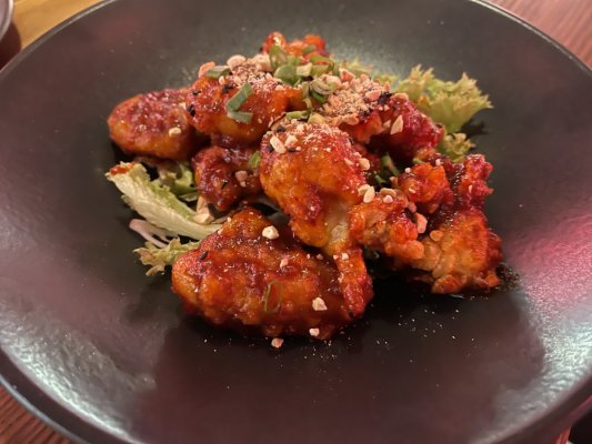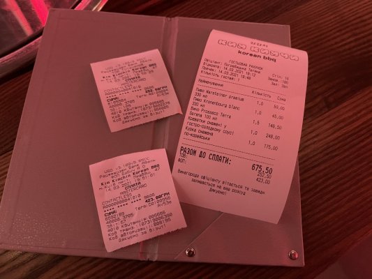 Зашли в этот типа ресторан, жаль потраченное время и деньги. Водка якобы из кореи ,но думаю взяли обычную и разбавили водой,пиво по вкусу очень похоже ... Ещё Зашли в этот типа ресторан, жаль потраченное время и деньги. Водка якобы из кореи ,но думаю взяли обычную и разбавили водой,пиво по вкусу очень похоже на кроненбург 1664 ,хотя представляли как чисто из кореии)). В пиалках дали по столовой ложке капусты с разными заправками, огурец маринованный,соус,салат типа из крабовых палочек)). Вырезка говяжья это вообще печалька -три кусочька который один из низ почерневший краешек . Суп из морепродуктов не впечетлил -баланда ,если вытащить мидии ,то это остраяя горячая вода с томатной пастой. Нормальнаяя была курица в попкорне и более менее коктель,а все остальное в помойку. Не советую.