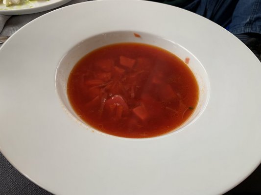 Просто ужас! Заказали самое дорогое блюдо в меню - «дичина під грибним соусом від ШЕФА», официант сказала что это мясо медведя су-вид, принесли нам куски ... Ещё Просто ужас! Заказали самое дорогое блюдо в меню - «дичина під грибним соусом від ШЕФА», официант сказала что это мясо медведя су-вид, принесли нам куски то ли телятины, то ли вообще курицы, в которых из-за каких-то индийских специй даже не чувствуется вкуса мяса, и соус грибной это 5 капель, размазанных по тарелке. К ним подали еще жирные овощи, тоже в тех же ужасных специях, хотя официант сказала, что гарнира там нет, и нужно заказывать отдельно. А мясо медведя белого цвета кто-то вообще видел??? Лично мы кушали только тёмно-красного, но в ресторане Ханей наверное свои медведи...о су-вид вообще молчу. Рядом даже не стояло. Даже по фото видно. Как гарнир заказали «карамелізовані овочі з бринзою»..знаете что было в тарелке? 3 куска вареного буряка, 3 куска моркови, и 3 куска яблока, это всё карамелизировано и посыпано брынзой. Лично для меня понятие ОВОЩИ – это не буряк, морковь, и ЯБЛОКО. Такие нюансы нужно прописывать в меню детально!!!! Вообщем не рекомендую это заведение от слова СОВСЕМ!!!! А еще заказали вино, через 10 минут официантка подходит и говорит, что наше вино на складе закончилось, и хватает только на один бокал, либо же они могут разлить порцию по полам на два бокала, по 75 грамм. Предложить другое вино они не додумались...кароче, такого трешака в Буковеле еще не попадалось