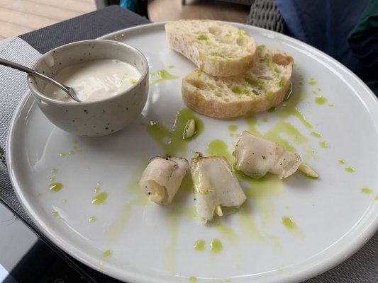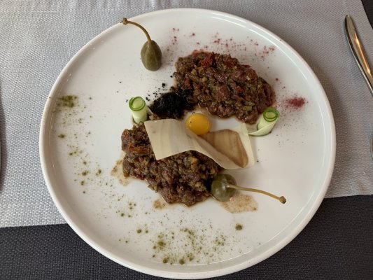 Вообще не понравился тартар из говядины. В блюдо было добавлено слишком много кислоты. К нам подходил управляющий рестораном, интересовался все ли нам нравится. Когда задали ему вопрос относительно тартара, он объяснил, что у них новый повар со своей новой нестандартной концепцией. Ну, возможно )