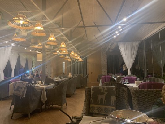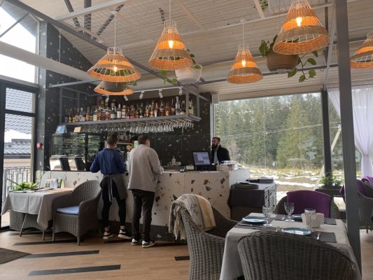 Увидели по дороге рекламу и решили заехать в это место. Интерьер очень современный, комфортно, обстановка внутри замечательная. Играет лайт музыка. Вежливый персонал блюда подаются космически ... Ещё Увидели по дороге рекламу и решили заехать в это место. Интерьер очень современный, комфортно, обстановка внутри замечательная. Играет лайт музыка. Вежливый персонал блюда подаются космически красиво и быстро. Цены приемлемые. Вид с ресторана на снежный лес - бесподобен