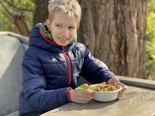 Мы прогулялись вдоль озера, дети покатались на ослике Афоне, кстати, это единственный мужчина-осел))), покормили осликов. Далее нас пригласили на дегустацию молока и других продуктов на основе ослиного молока. А еще хозяева приготовили огромный казан настоящего плова, которым можно было пообедать, это самый вкусный плов, который лично мне доводилось ранее пробовать (платная услуга). Дети напрыгались на батуте и наигрались в детской зоне. Уезжать совсем не хотелось, потому что было очень душевно и спокойно.