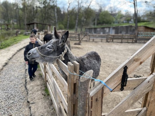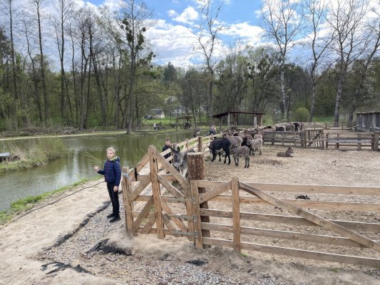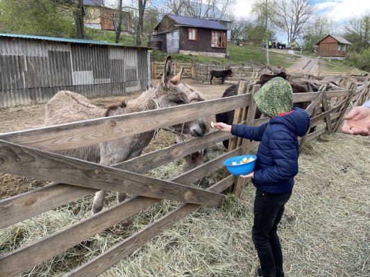 На ферму с осликами попали случайно, увидели в инстраграмме рекламу. Добирались по навигатору около 50 минут со стороны Софиевской Борщаговки. Ехать нужно через села и по серпантину, будьте к этому готовы ( дочку слегка укачало). Прибыли на место и немного удивились, т.к со стороны нам показалось, что это обычный двор и предполагалось, что увидим просто вольеры с осликами. Стоимость вхожа для взрослого - 200 грн, дети от 5 лет - 100 грн, до 5 лет - бесплатно. В эту сумму входит - прогулка по всей территории фермы неограниченная по времени, фрукты и овощи для осликов, дегустация ослиного молока, катание на ослике, детские развлечения в виде батута и нескольких качелей с корками.