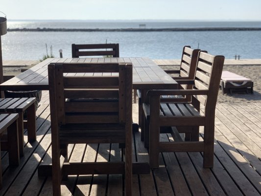 - отсутствие своего пляжа и бесплатных лежаков (стоимость на день - 40 грн без матраца).