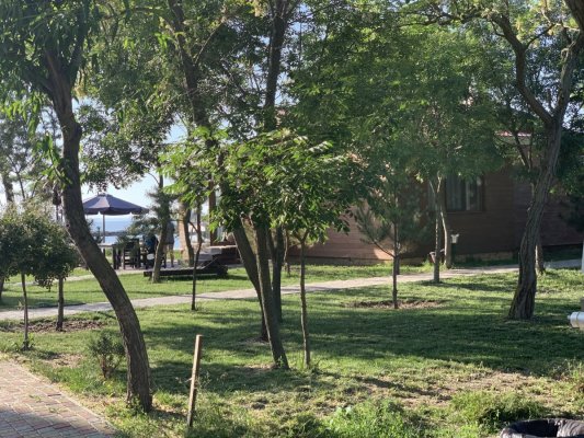 Подъезжая к воротам ничего особенного я не ожидала увидеть, но когда попали внутрь и прогулялись по территории - показалось, что попали в сказку. Красивейшая территория, котрлрая утопает в огромном количестве молодых сосен. Современные деревянные коттеджи со своими террасами, мангалами и шезлонгами. Уютный ресторан и пляж на берегу лимана.