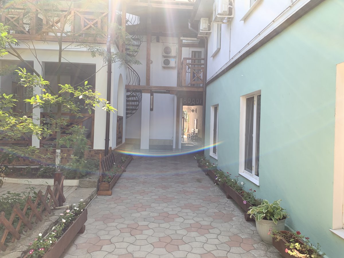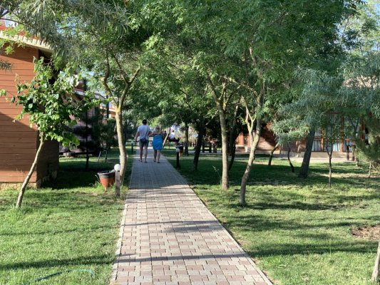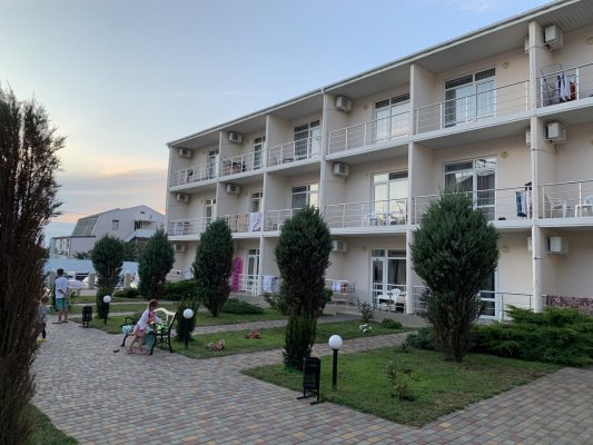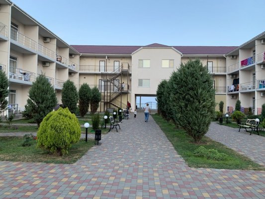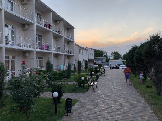 Четырехэтажные корпуса расположены так, что внутри есть двор с больши количеством зелени, цветов и скамейками, очень уютно и если Вы отдыхаете с детьми - это удобно, потому что детям есть где поиграть.