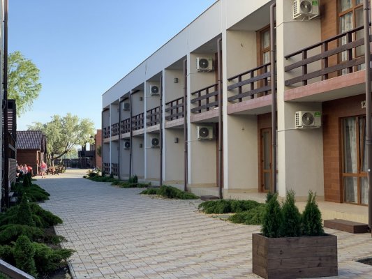 Мы бронировали коттедж для компании - огромная гостиная с кухней и всей необходимой посудой, спальня с видом на лиман, две спальни с видом на бассейн, два санузла. Все идеально чисто. Правда, за 4 дня, к сожалению, не было смены полотенец.