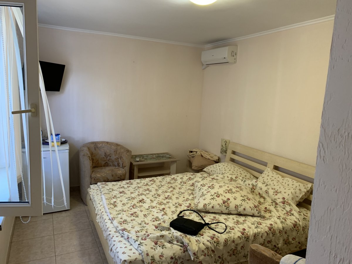 Номера небольшие, но есть все необходимое - шкаф, стол, журнальный столик, двухспальная кровать (по просьбе и за отдельную плату устанавливают полноценное дополнительное место), чистые полотенца и постельное белье.