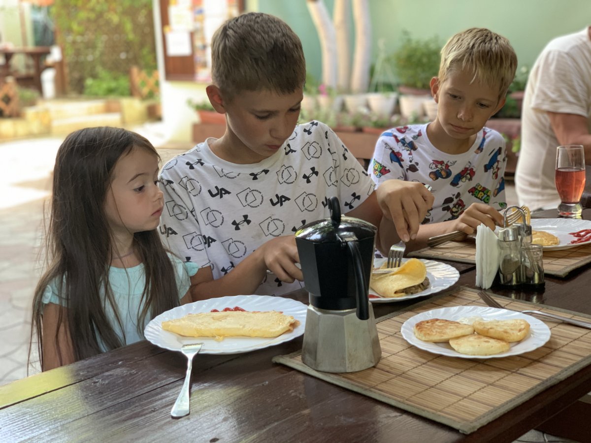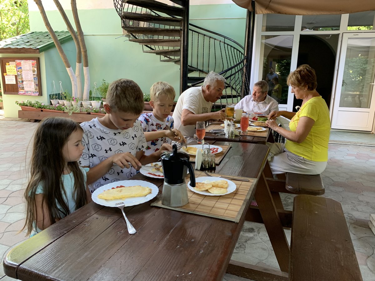 На протяжении всего лета практически жили в этом регионе, были во многих отелях Затоки, Грибовки и Санжейки. Для отдыха большой семьей Водограй подходит более всего. Большая и удобная территория отеля, во дворе имеется кухня с двумя электрическими плитами, микроволновая печь и две мойки. Это было очень удобно, периодически мы готовили завтрак именно на этой кухне.