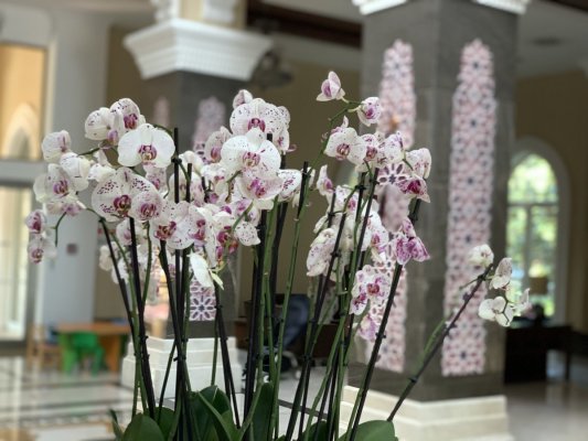 На территории много цветов, пальмы, сосны и запах можжевельника, прям как в старом добром украинском Крыму.