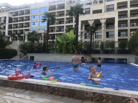 На протяжении всего лета практически жили в этом регионе, были во многих отелях Затоки, Грибовки и Санжейки. Для отдыха большой семьей Водограй подходит более всего. Большая и удобная территория отеля, во дворе имеется кухня с двумя электрическими плитами, микроволновая печь и две мойки. Это было очень удобно, периодически мы готовили завтрак именно на этой кухне.