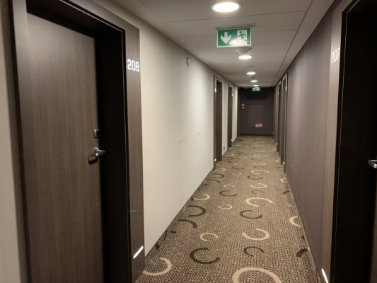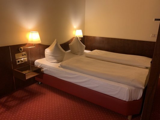 The Bricks Hotel расположен рядом с автобаном, который мы проезжали по пути из Мюнхена в сторону Польши. Отель стал нашей транзитной остановкой. Заселение у нас планировалось позднее, поэтому мы были готовы к тому, что на ресепшине нас встретит полусонный немец, который будет считать минуты до скорейшего нашего “good night”. Подъезжая ближе к точке назначения были смущены тем, что Marktredwitz - это деревня, где нету ни души в 11 вечера. Подъезд к отелю мало был похож на подъезд - вместо асфальта щебень. Но, радовало то, что на парковке было ещё 2 автомобиля, это выселяло надежду, что мы здесь не одни. Подойдя ко входу увидели надпись “self check in” и прямо на двери информацию как это сделать. Оказывается, при проигрывании мне прислали код для входа и внутри мы увидели стойку регистрации. Круто ! Это так современно и здорово. Мы ввели данные, активировали карту-ключ к номеру и все ! Такого я вообще не ожидала в глуши на автобане.