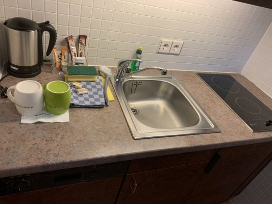 Огромный плюс в том, что в номере была кухня и можно было самостоятельно готовить. Мы покупали супер вкусные баварские сосиски и готовили себе ужин.