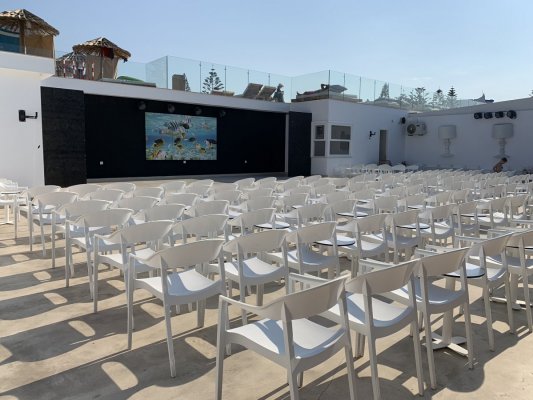 Днём на пляже предлагаются перекусы в виде пиццы, фруктов и т.д.